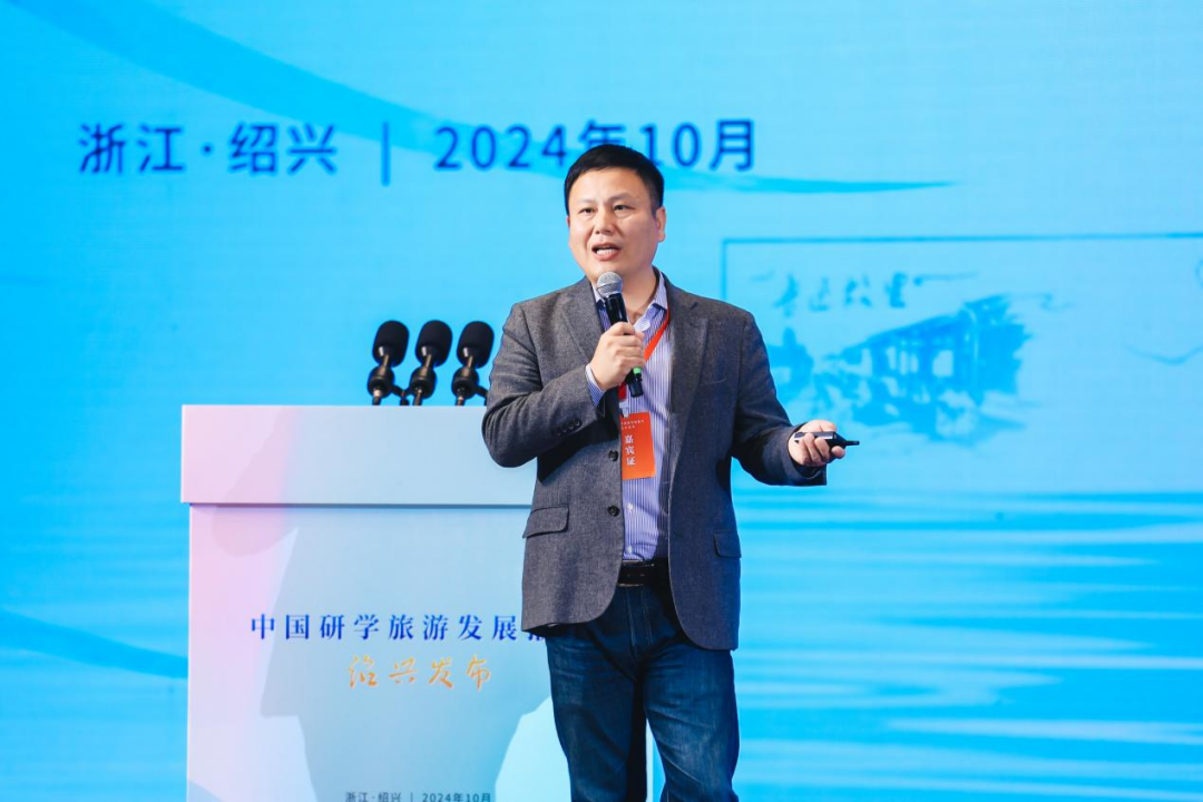 柴焰博士代表研学旅游课题组发布了《研学·城市——绍兴研学旅游开展报告》,从城市开展的视角剖析了研学与绍兴城市品牌建设的关系。